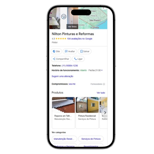 Ele ainda não tinha Perfil da Empresa no Google, então sua empresa não aparecia quando alguém pesquisava por pintores na região.